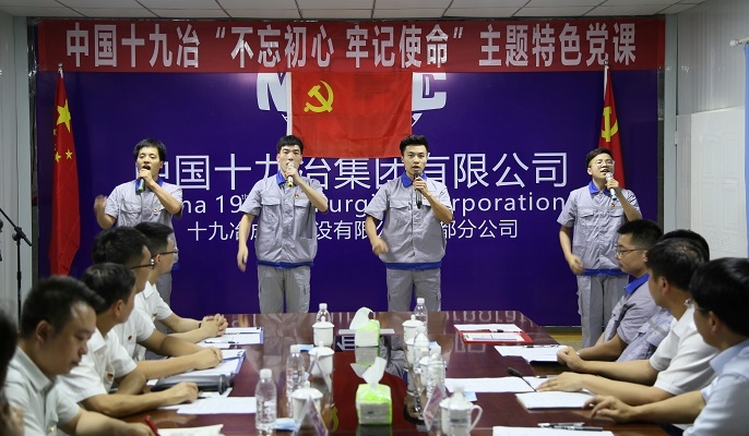 为迎接中国共产党建党98周年,做好“不忘初心、牢记使命”主题教育宣传工作,中冶集团党委宣传部通过开展“七一”主题企业开放日宣传活动讲述“不忘初心、牢记使命”特色党课。活动以《习近平关于“不忘初心、牢记使命”重要论述选编》37篇文章作为党课选题,组织14家单位通过以情景剧、音乐剧、戏剧、朗诵、舞蹈等多种丰富多彩的文艺形式创新党课表现方式阐释文章精神内涵,发动广大党员“筹智”讲党课,让党课内容更加生动,党课教育更加入脑入心。中国十九冶集团以《习近平关于“不忘初心、牢记使命”重要论述选编》中“人民军队必须永志不忘的红色血脉”这一专题,通过“老党员讲故事+诗歌朗诵+唱红歌+党课分享”等多种形式,教育和引导党员紧密团结在以习近平同志为核心的党中央周围,牢固树立“四个意识”,更加坚定“四个自信”,坚决做到“两个维护”,学习保持艰苦奋斗,敢打胜仗、硬仗的精神斗志和优良作风,赓续永志不忘的红色血脉,在新时代听党话、跟党走,对党忠诚,爱岗敬业,为企业高质量发展作出新的更大贡献。